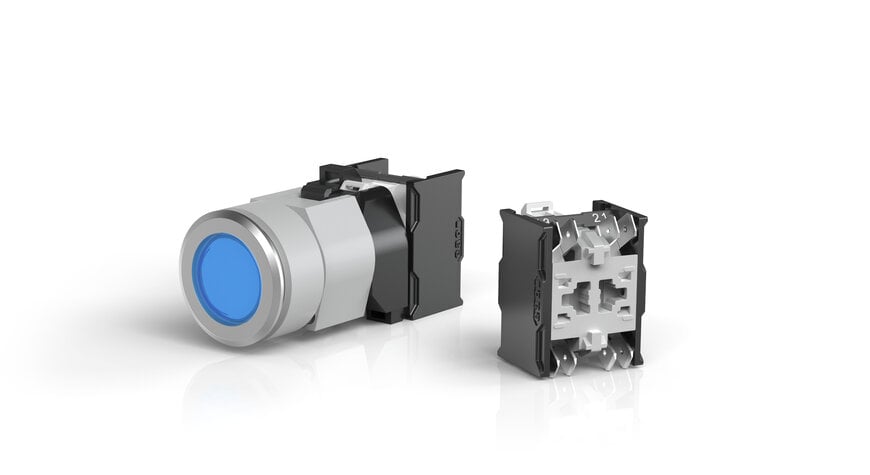 Différents matériaux de contact et configurations de contacts permettent diverses applications, par exemple des éléments de commutation à rupture lente avec contacts à ouverture positive de contact pour les boutons d’arrêt d’urgence