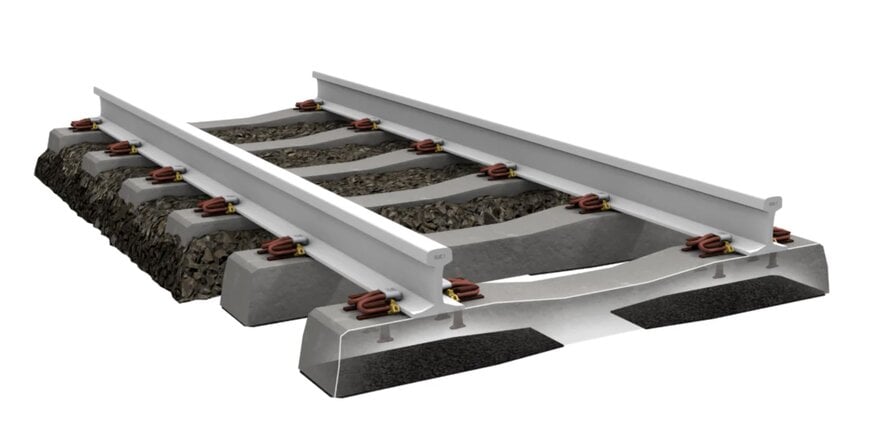 L’intégration des USP de Pandrol dans la traverse en béton repose sur le procédé breveté MFF® (Micro Filament Fastener). Ce mécanisme assure une accroche efficace des semelles dans le béton frais lors de la fabrication des traverses. Il permet de sécuriser la tenue mécanique de l’assemblage tout en réduisant le temps nécessaire à l’installation industrielle.