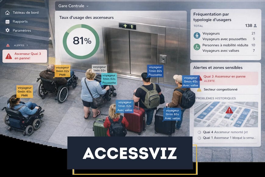 AccessViz s’appuie sur des capteurs intelligents et des algorithmes IA capables de détecter les publics à besoins spécifiques (PMR, usagers avec poussettes ou bagages), de mesurer l’usage des dispositifs d’accessibilité (ascenseurs, rampes) et d’identifier en temps réel les comportements à risque (quais, escaliers mécaniques, zones interdites).